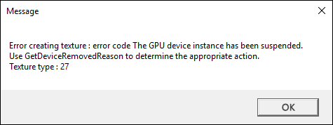 위 그림과 같은 오류 메세지는 Windows 상태와 GPU드라이버가 충돌 문제입니다. 혹은그래픽카드의 성능 저하로 발생하는 문제일 수도 있습니다. 이 문제를 해결하기 위해서는