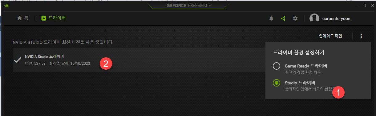 2, 그래픽카드 드라이버를 최신 버전으로 업데이트 바랍니다.(Geforce Experience, AMD Adrenalin)