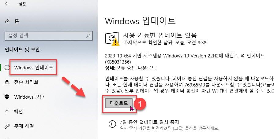 1, Windows를 최신 상태로 업데이트 할 것을 추천드립니다.